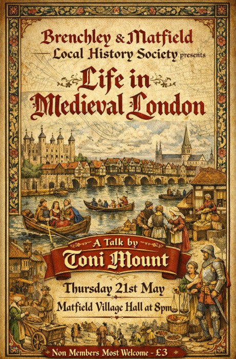 The next Society event will “Lost Pubs, Hotels and Breweries of Tonbridge” given by Cathy Rishman. Thursday 16th April 2026 at Matfield Village Hall 7.30pm for 8pm start.